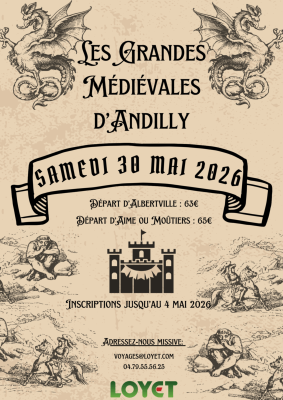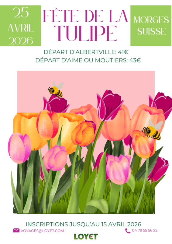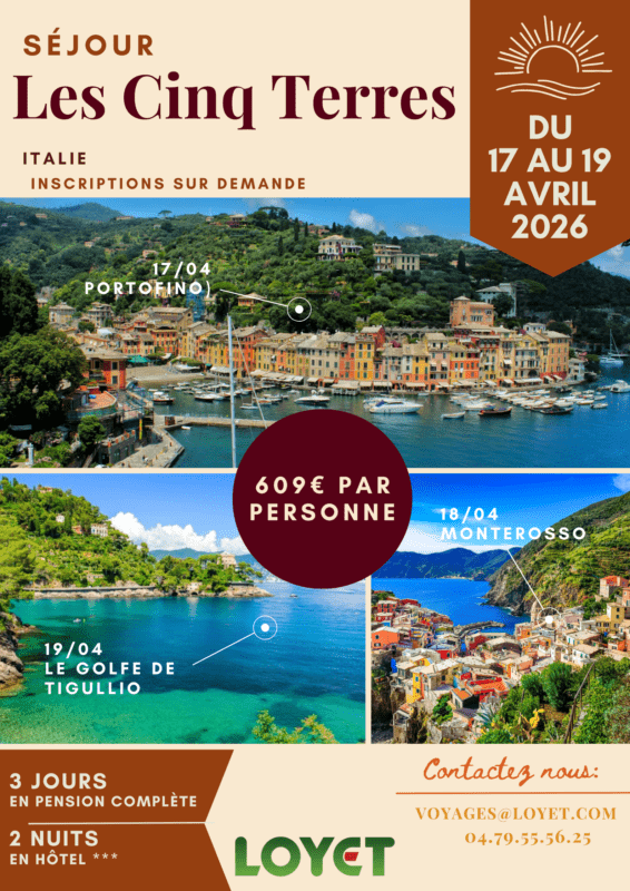 Inscriptions par téléphone au 04 79 55 56 25 ou par mail à voyages@loyet.com